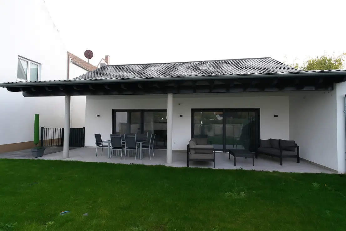 Das ca. 720 m² große Grundstück wurde ansprechend angelegt und bietet mit Terrasse, Patio und gepflegtem Garten ein hohes Maß an Privatsphäre und Lebensqualität. Ein elektrisches Hoftor, drei Außenstellplätze sowie ein 20.000-Liter-Regenwasserspeicher komplettieren dieses attraktive Angebot.