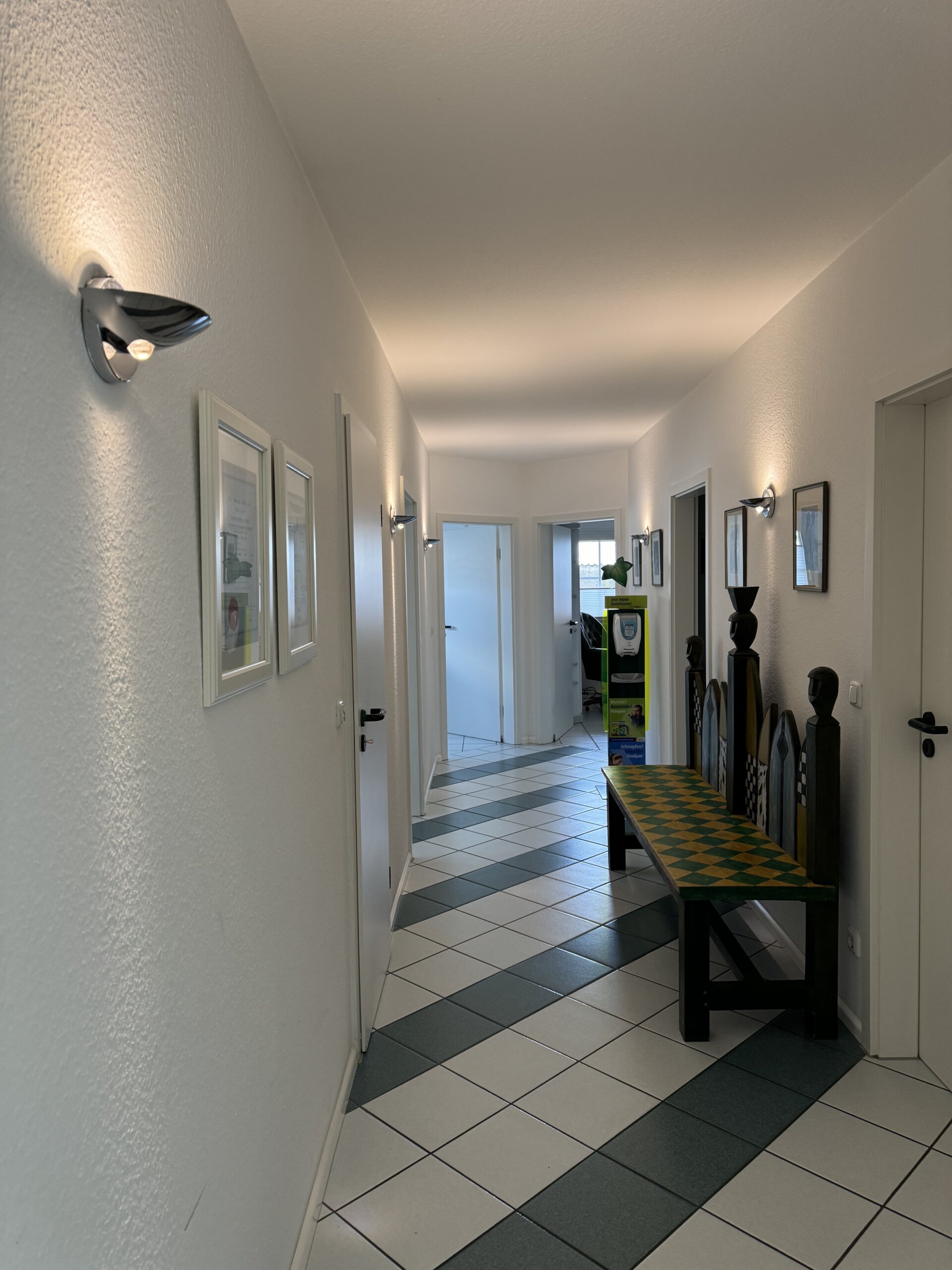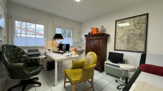Das Objekt setzt sich aus zwei 2-Zimmer-Wohnungen mit Küche, Bad und Balkon und einem Büroraum mit Bad sowie einer großzügigen Praxis zusammen.