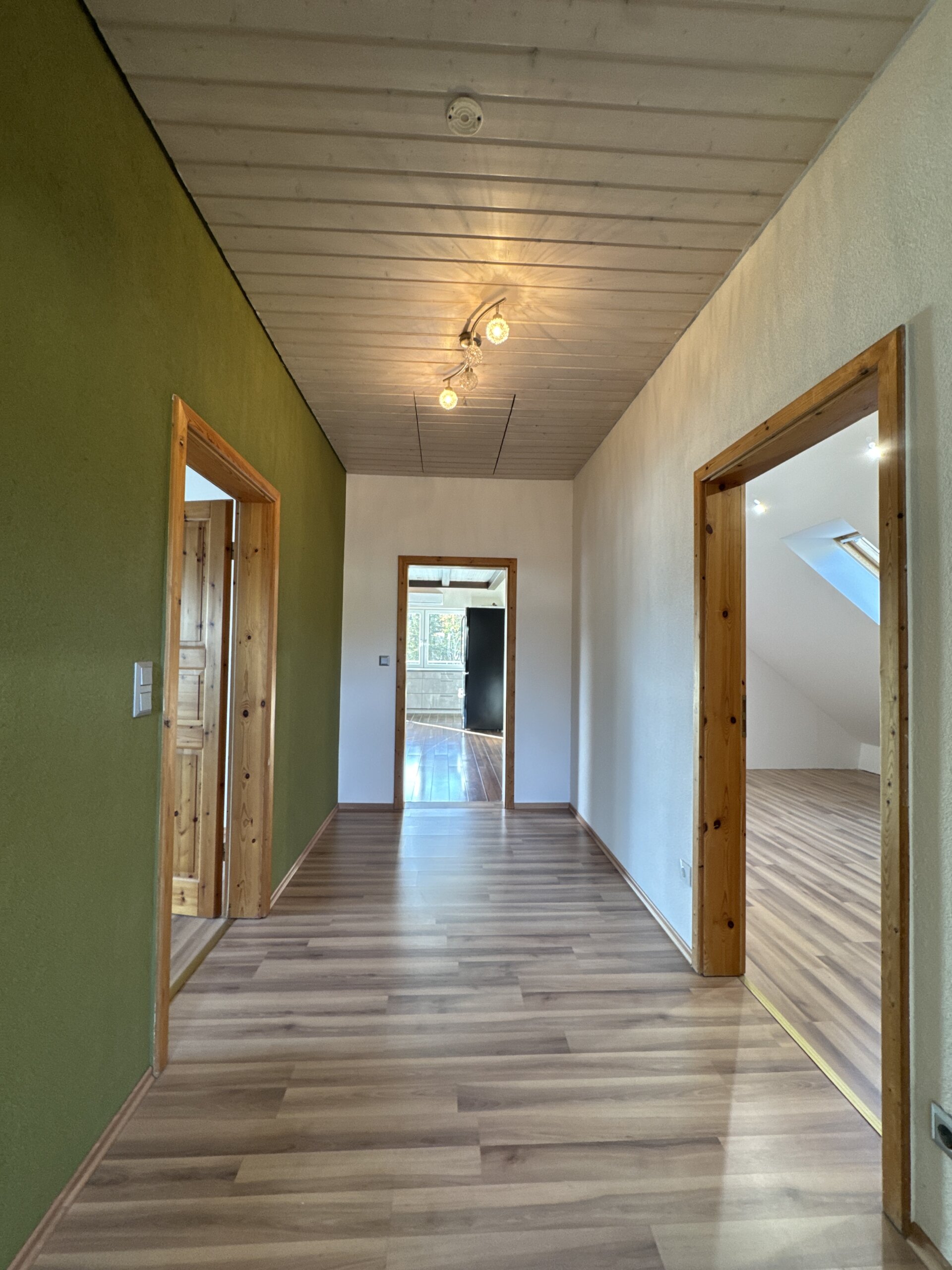 Die Umgebung ist geprägt von Einfamilienhäusern, viel Grün und einer angenehmen Nachbarschaftsstruktur. Die leichte Hanglage bietet einen schönen Blick auf die umliegende Landschaft.